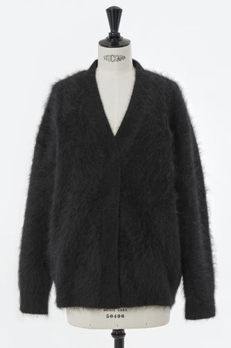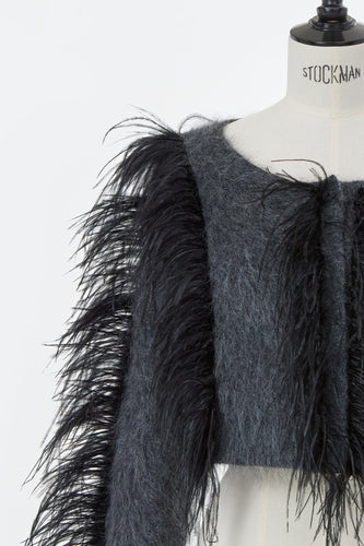 Wool Mohair Knit Feather Cardigan | Charcoal Grey