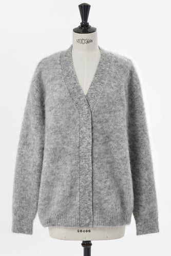 Wool Mohair Knit Big Cardigan | Light Grey