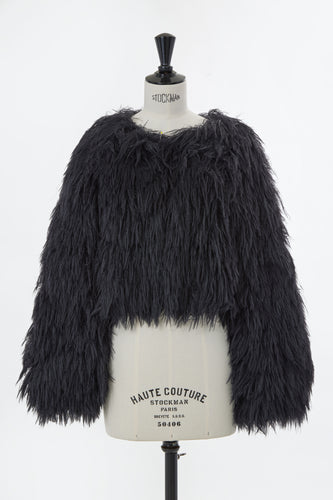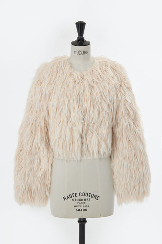 Long Fur Knit Short Cardigan | Stone
