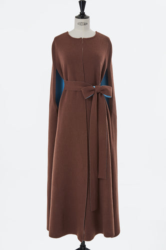 Reversible Cashmere Long Cape Knit Coat | Chocolate × Turquoise