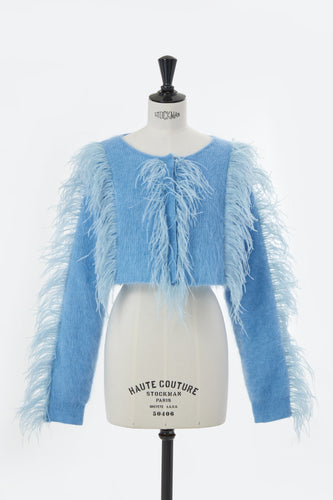 Wool Mohair Knit Feather Cardigan | Sea Blue