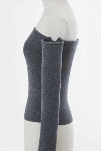 Wool Cashmere Asymmetrical Off-Shoulder Knit | Charcoal Grey