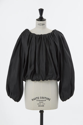 • Silk Off-Shoulder Gathered Blouse | Stone