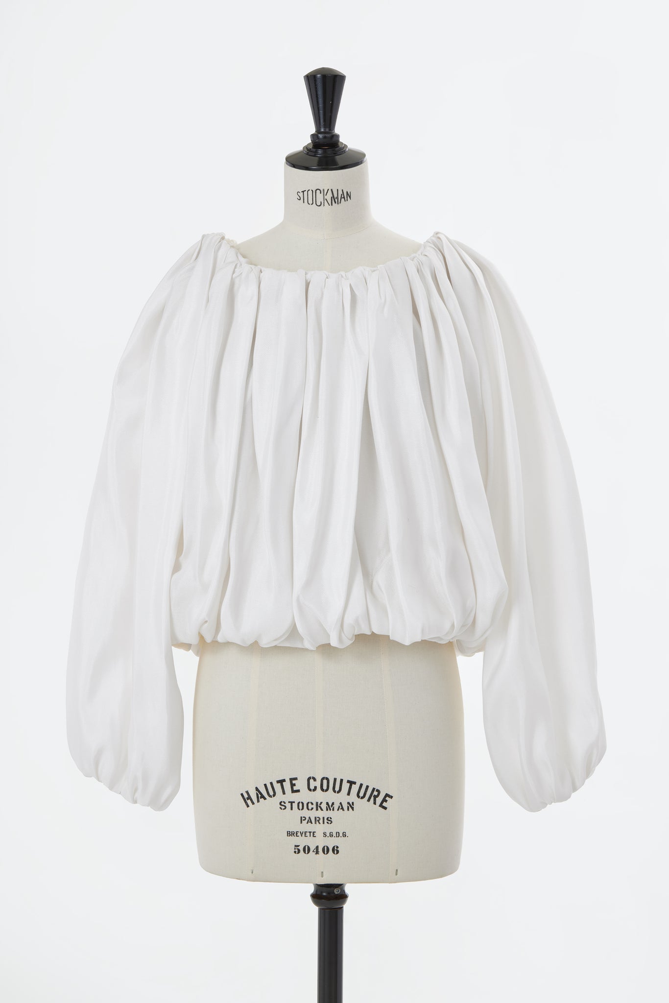 • 画像をギャラリービューアに読み込む, Silk Off-Shoulder Gathered Blouse | Shell White