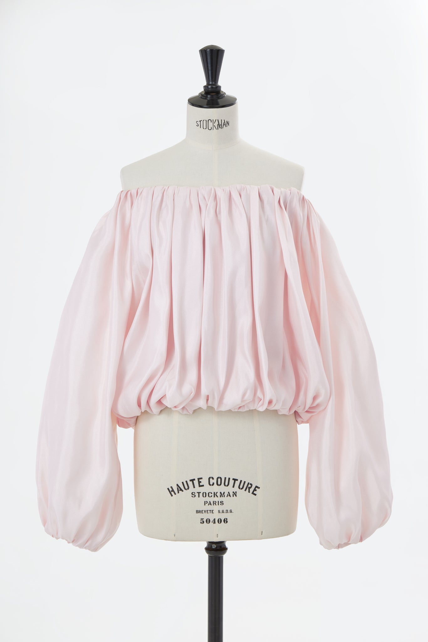 Silk Off-Shoulder Gathered Blouse | Shell White