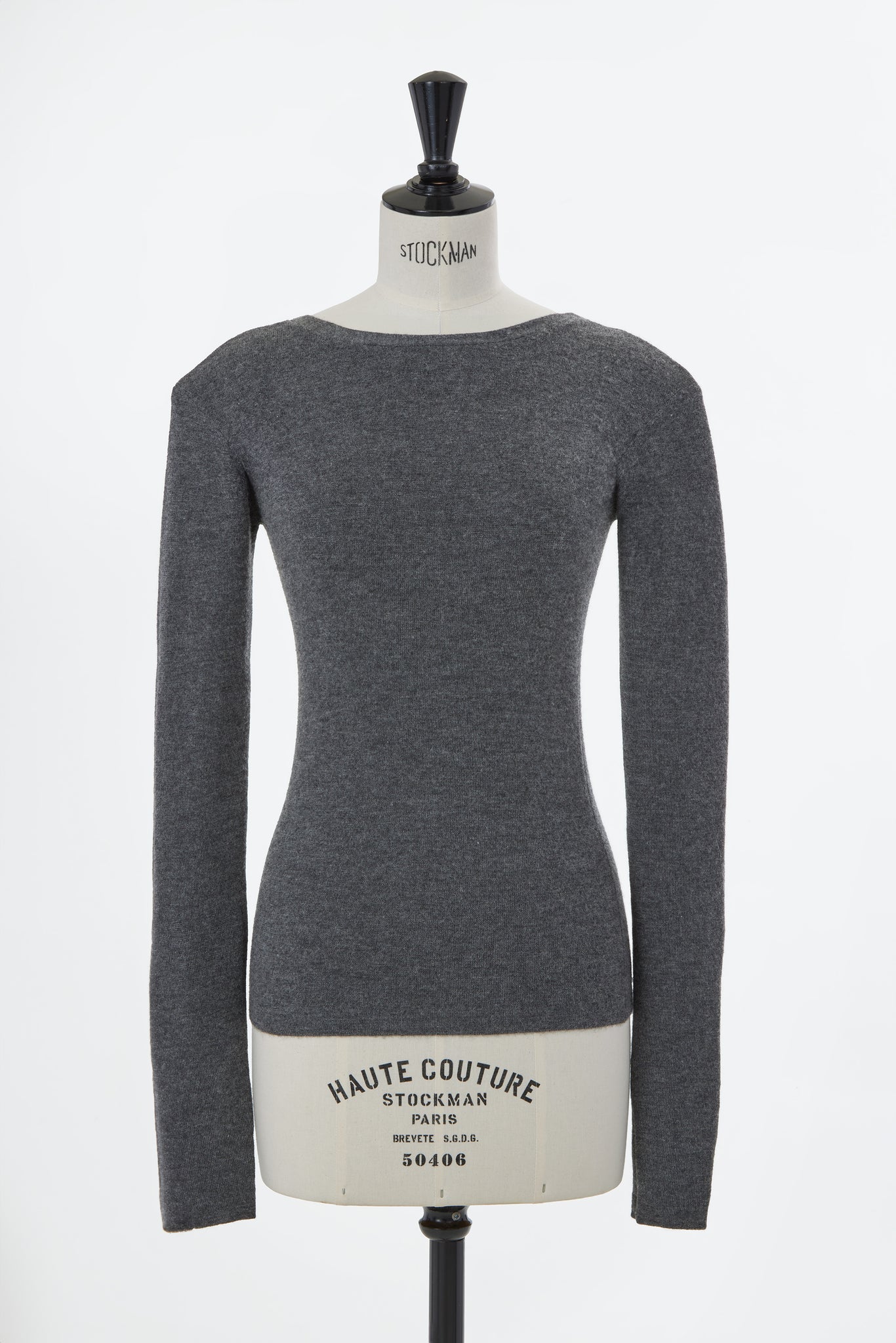 Cashmere Back-Open Knit Top | Charcoal Grey