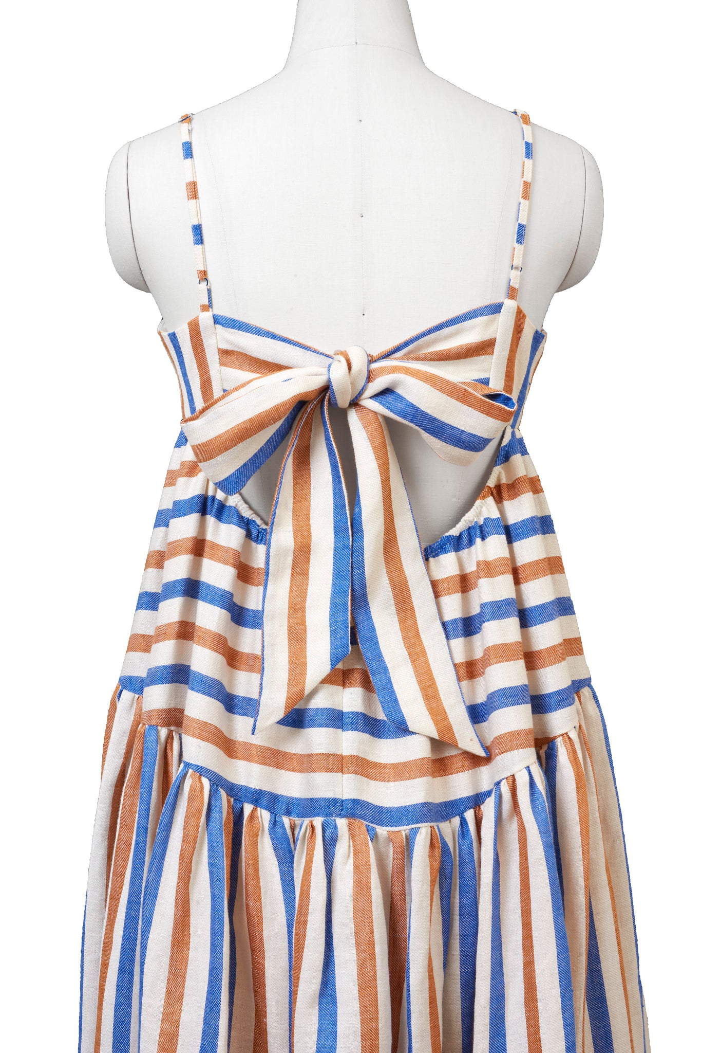 - Striped Linen Back Ribbon Tiered Maxi Dress
